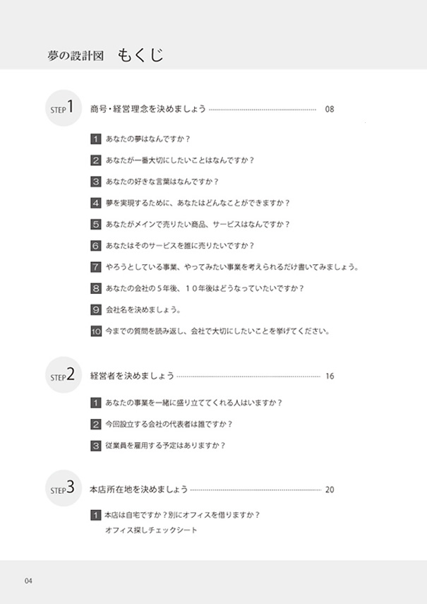 皆様は、夢を思い描き、夢の設計図を記入するだけで、楽しく簡単に会社を設立することができます。